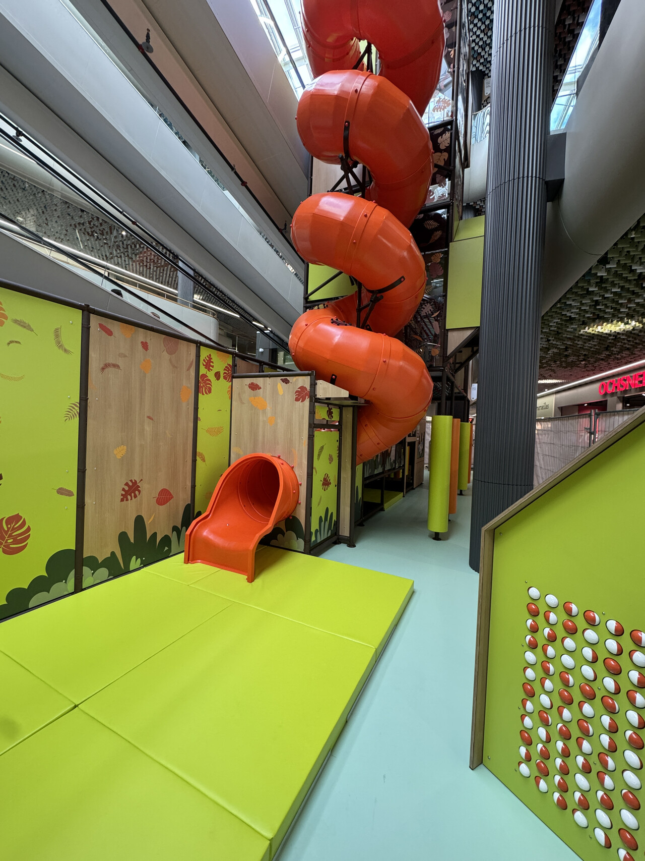 Nous avons eu le plaisir de collaborer avec la société Kompan dans le cadre de la réalisation de cette place de jeux située au sein du centre commercial de Signy. Nos équipes ont pris en charge l’ensemble du montage des installations, ainsi que la mise en œuvre du sol de sécurité, afin de garantir un espace à la fois ludique, esthétique et conforme aux normes en vigueur.