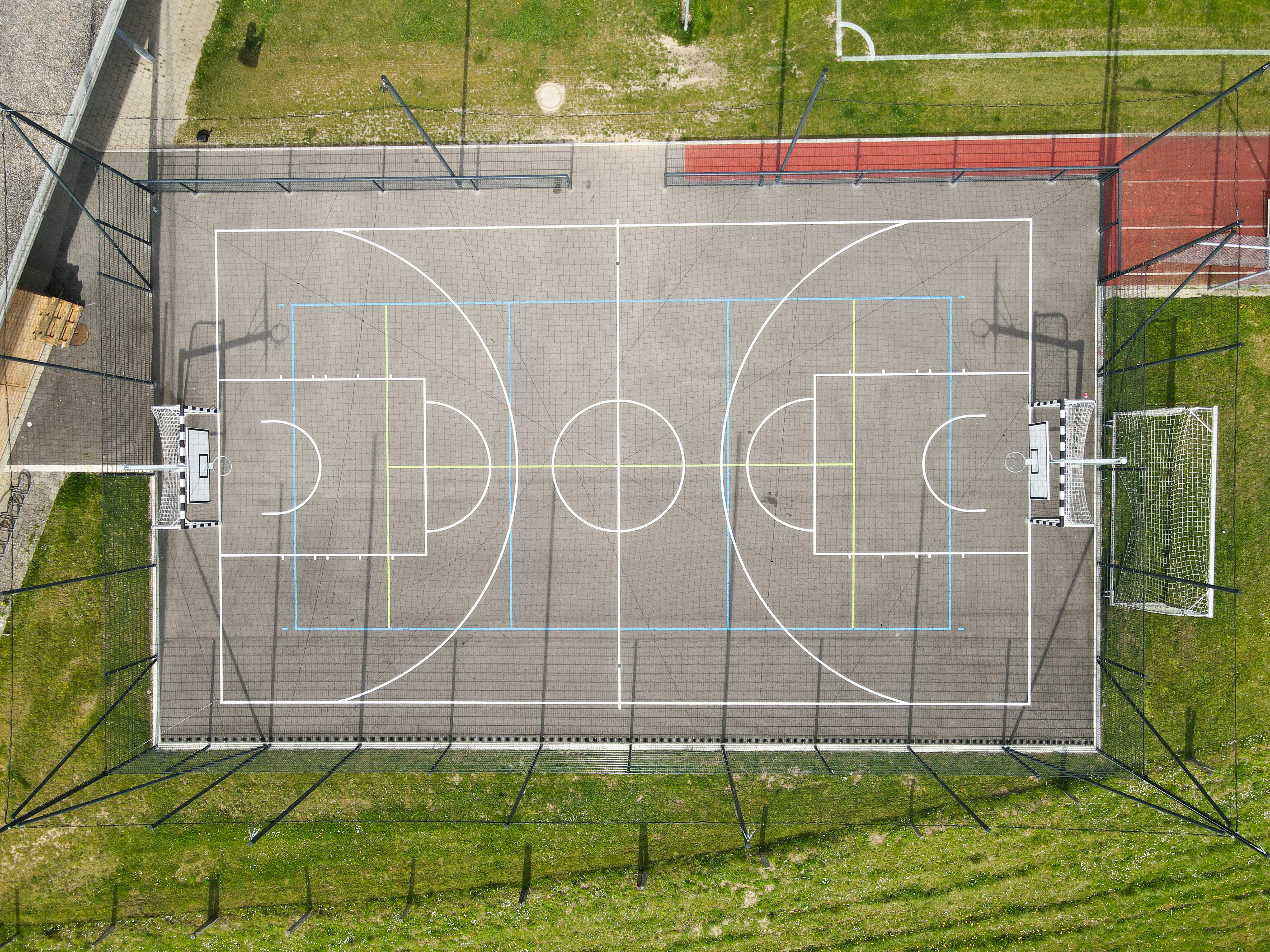 Exécution d’un nouveau revêtement sportif sur la zone à aménager, y compris marquages