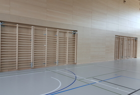 La salle de sport double du collège de Censuy à Renens a opté pour un sol sportif POLYmatch Zürich collé directement sur chape. Ce revêtement de sol sportif est particulièrement adapté pour une pratique du sport scolaire.